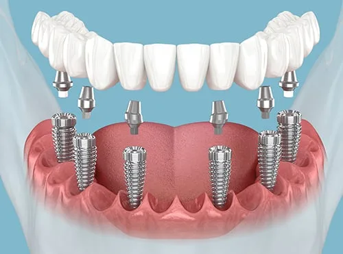 • Uses 4 or 6 implants to support a full-arch prosthesis.
